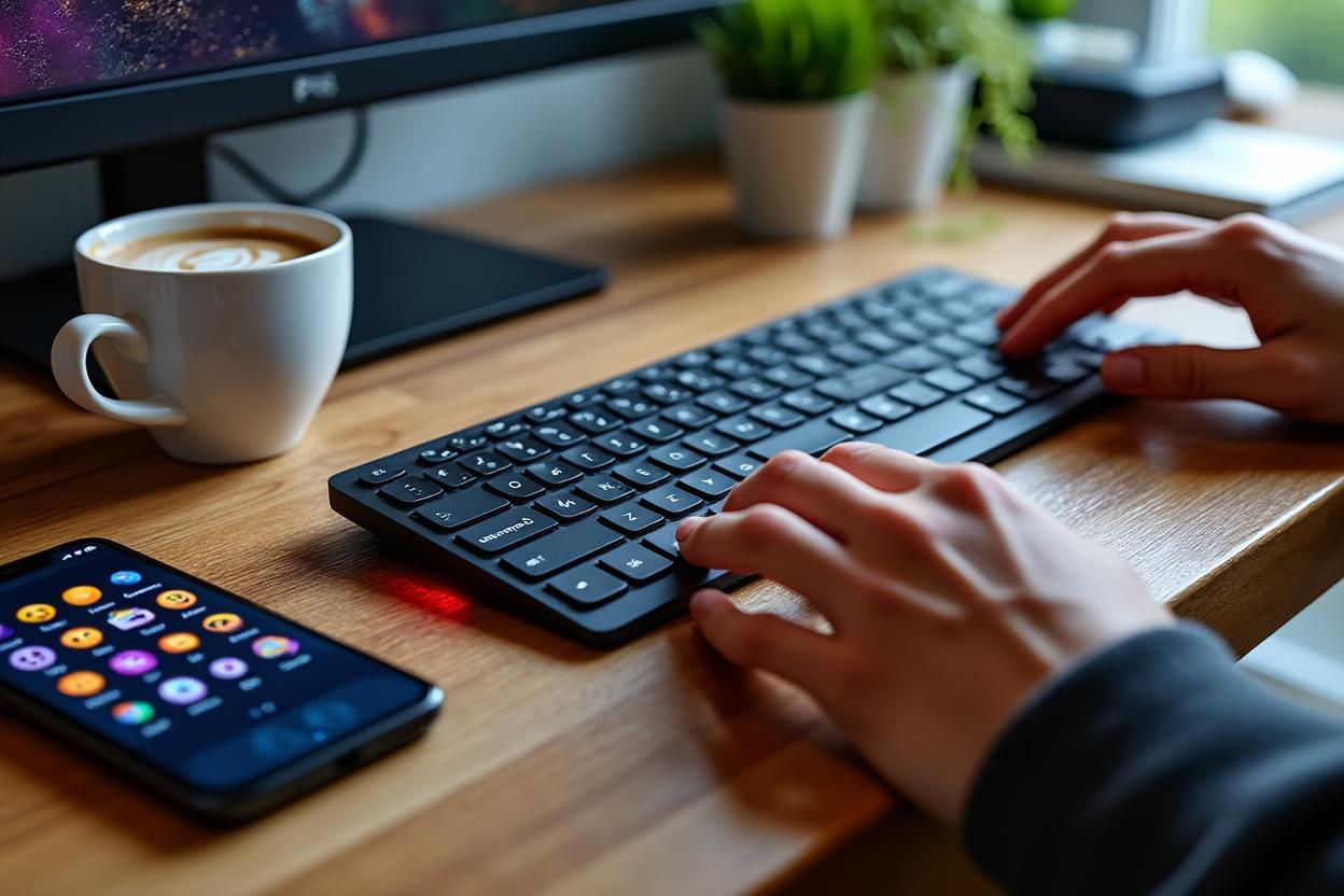 Si tu jongles entre un téléphone, une tablette et un ordinateur, avoir un périphérique unique qui suit ces appareils simplifie la configuration. Tu gardes la même méthode d’accès aux emojis, quel que soit l’appareil.